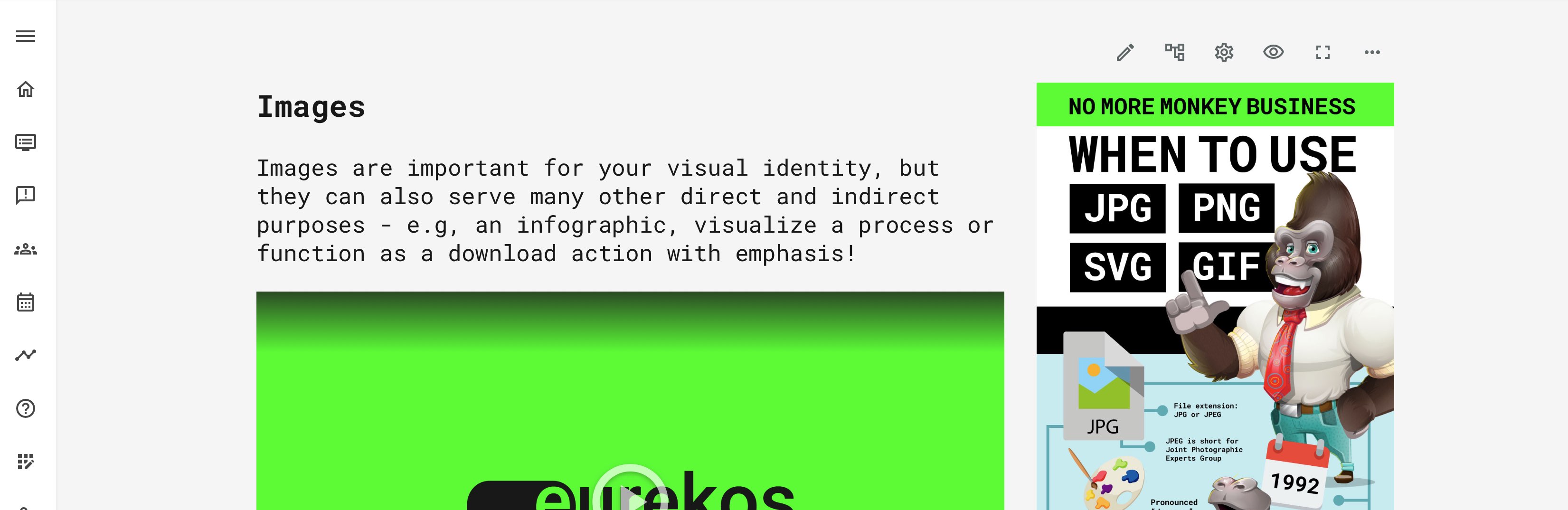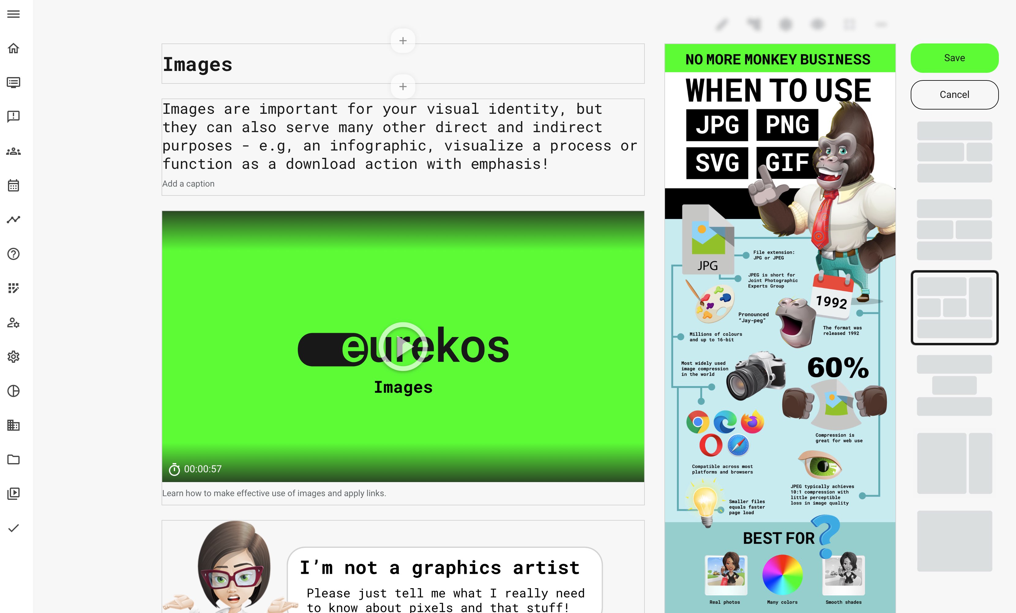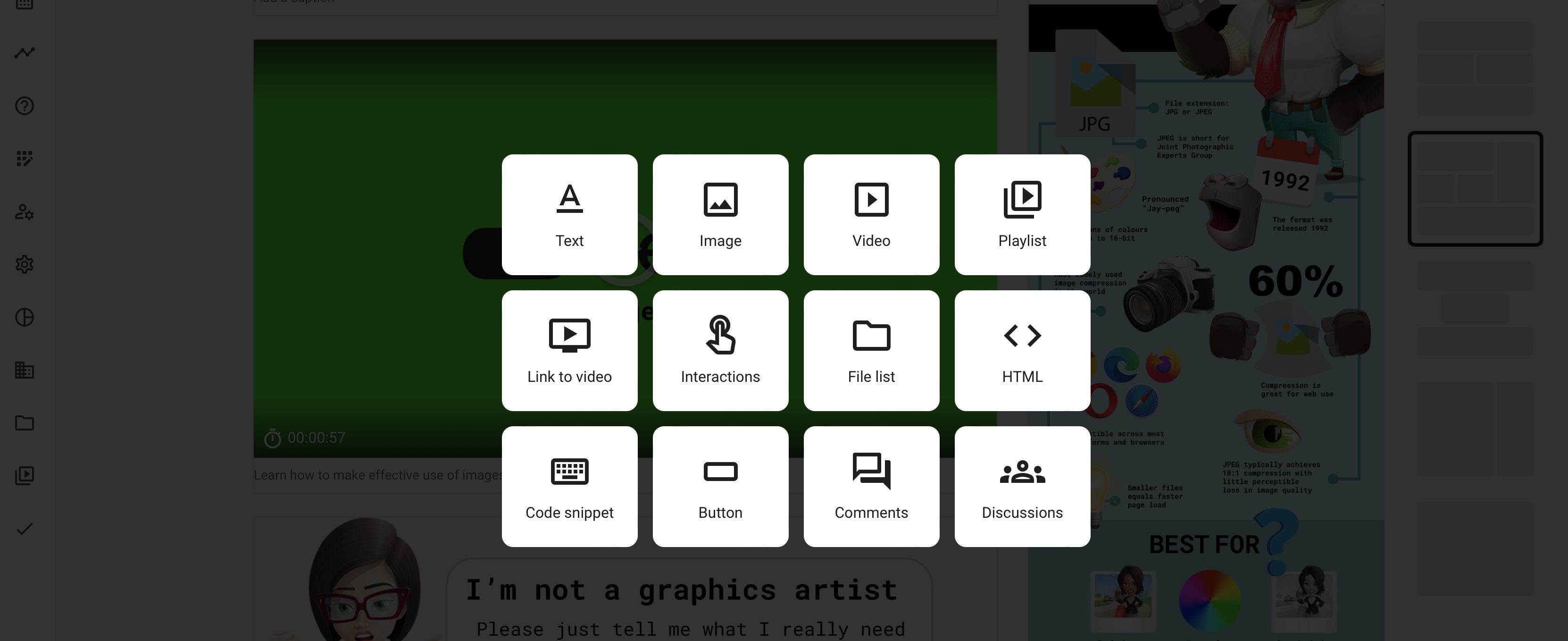 Use the editing interface to add your course assets and start enriching your course pages with amazing videos and graphics.