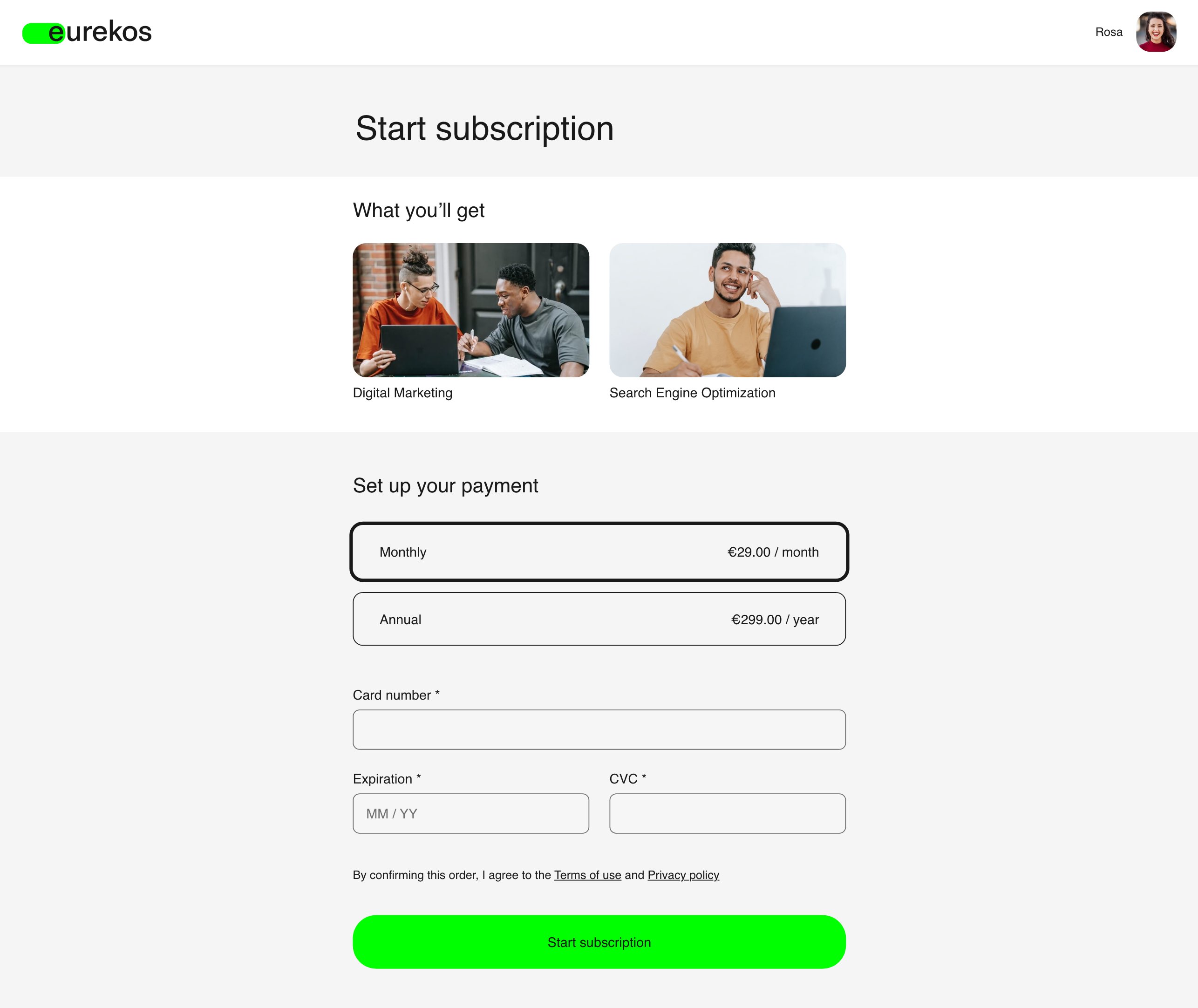 Once the subscription period is over, the user’s card connected when starting subscriptions will be charged again. Please note that no credit card information is stored on the platform.
