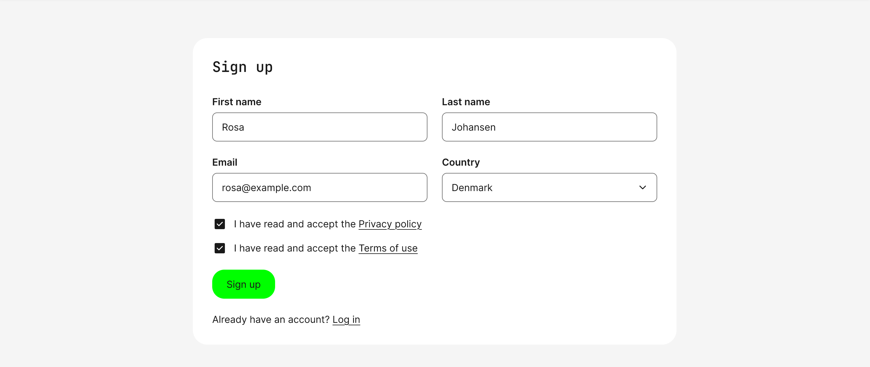 - Terms of use and Privacy policy are repeated, even though these have already been accepted.