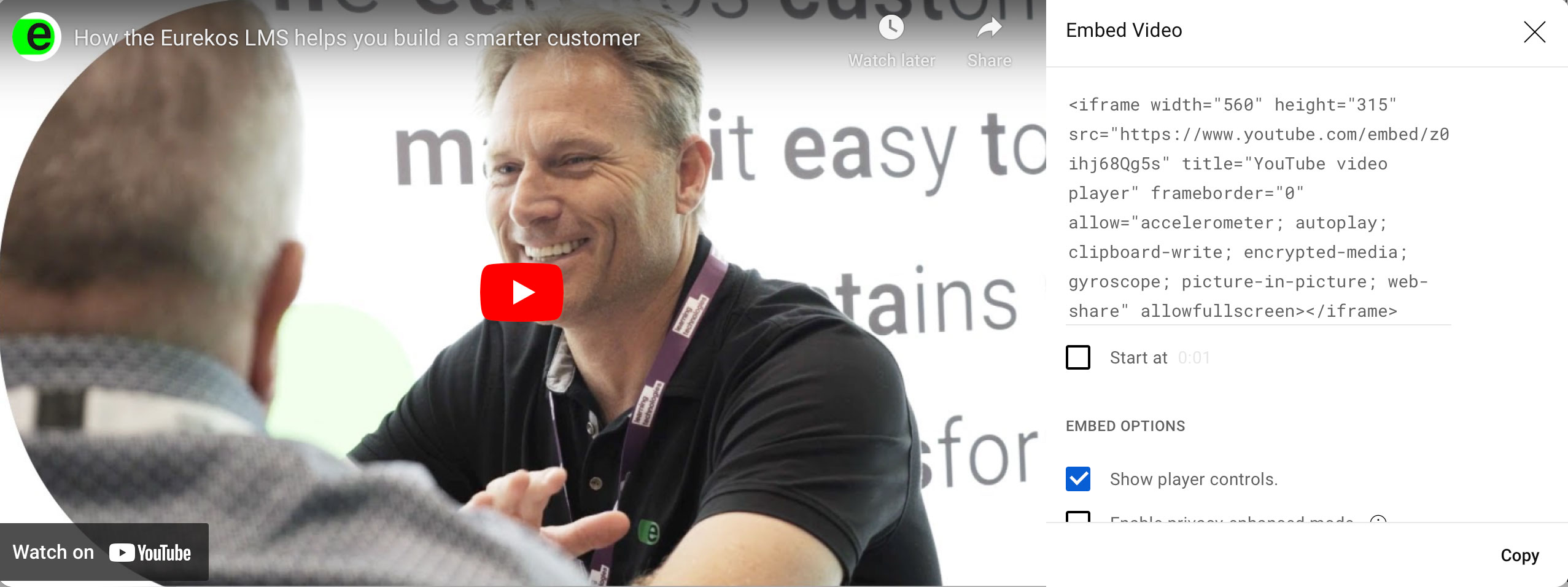 On the relevant 3rd party service, find the embed code, mostly offered through some sort of share option on the tool. This example is from YouTube.