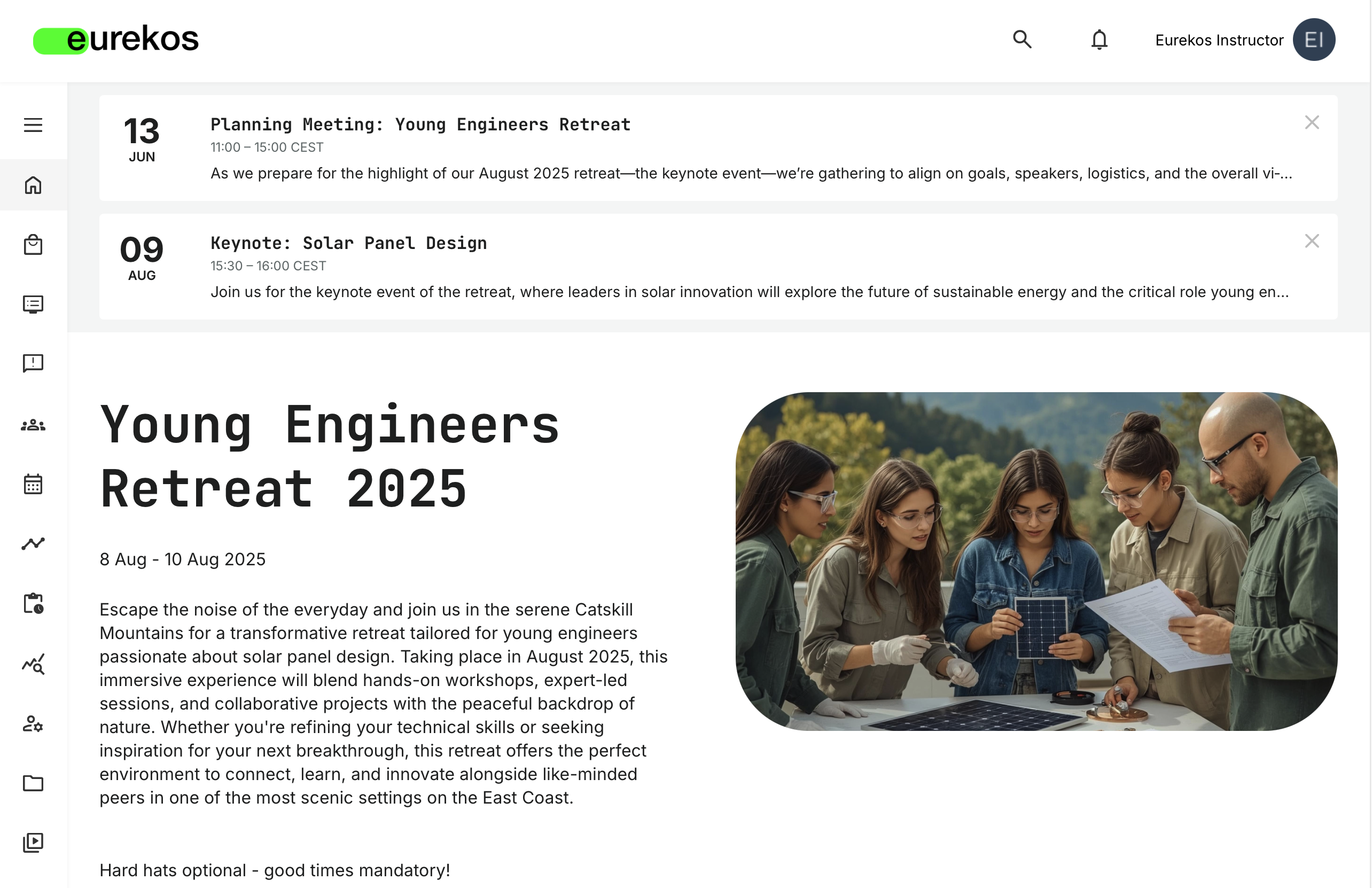 - Upcoming Events: An overview of Calendar events relevant to this Instructor