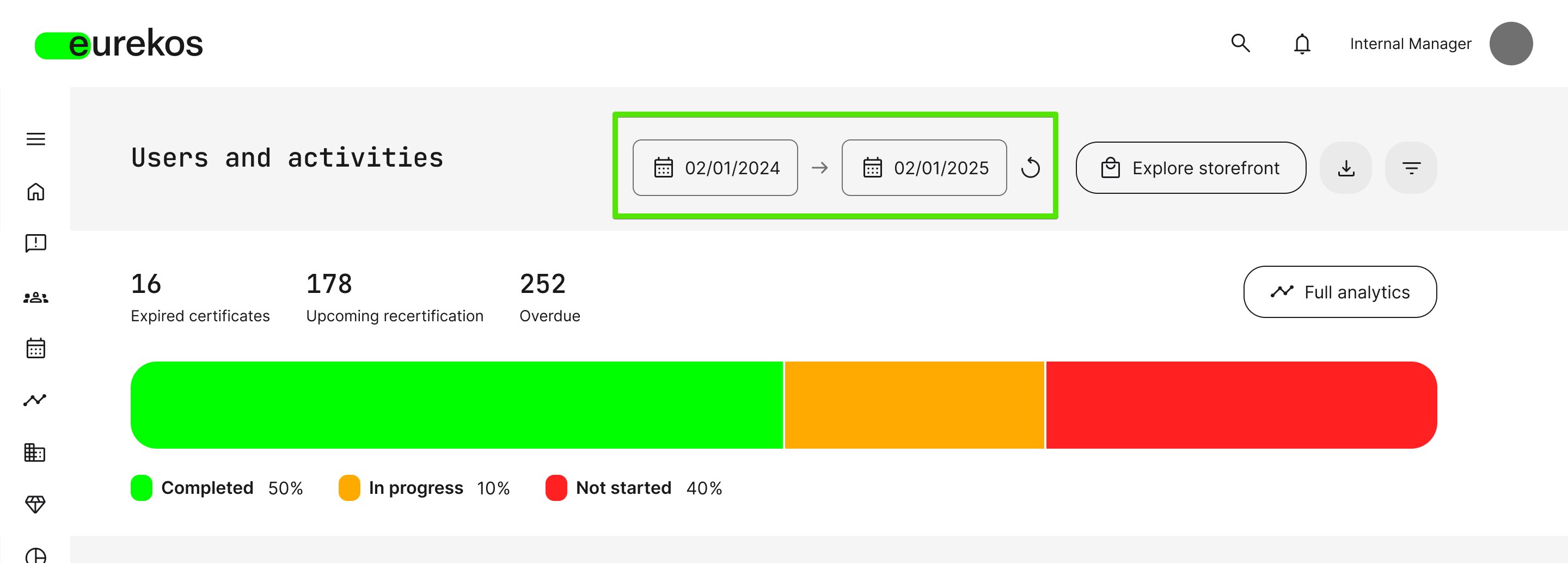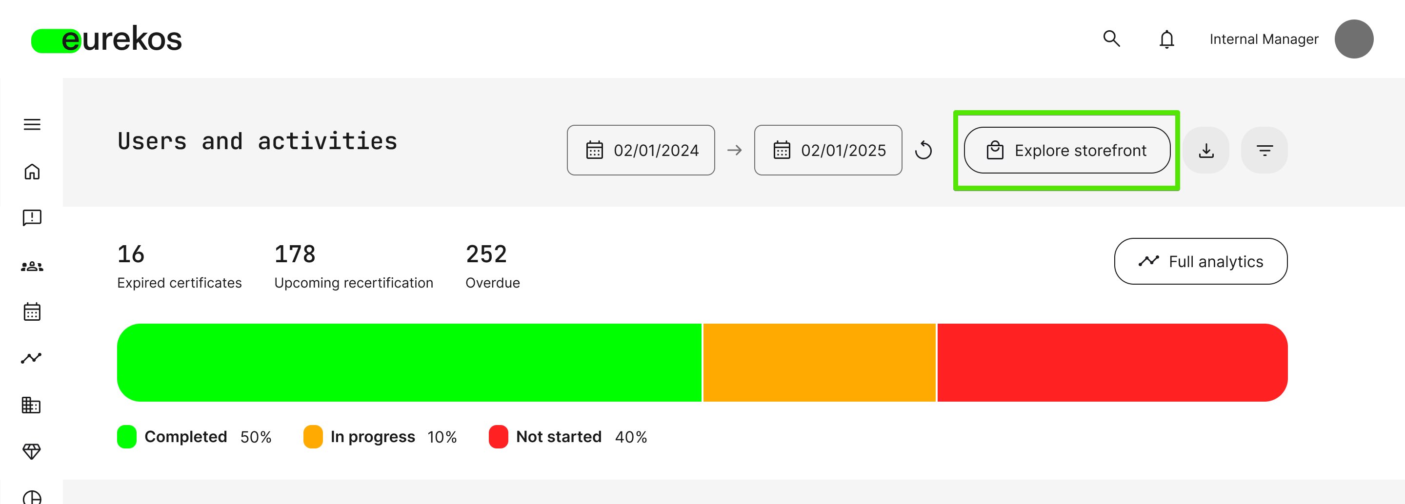 Should the Immediate Manager wish to visit the Storefront in order to book trainings for themselves or the people they manage, the [Explore Storefront] button is conveniently located next to the date selector: