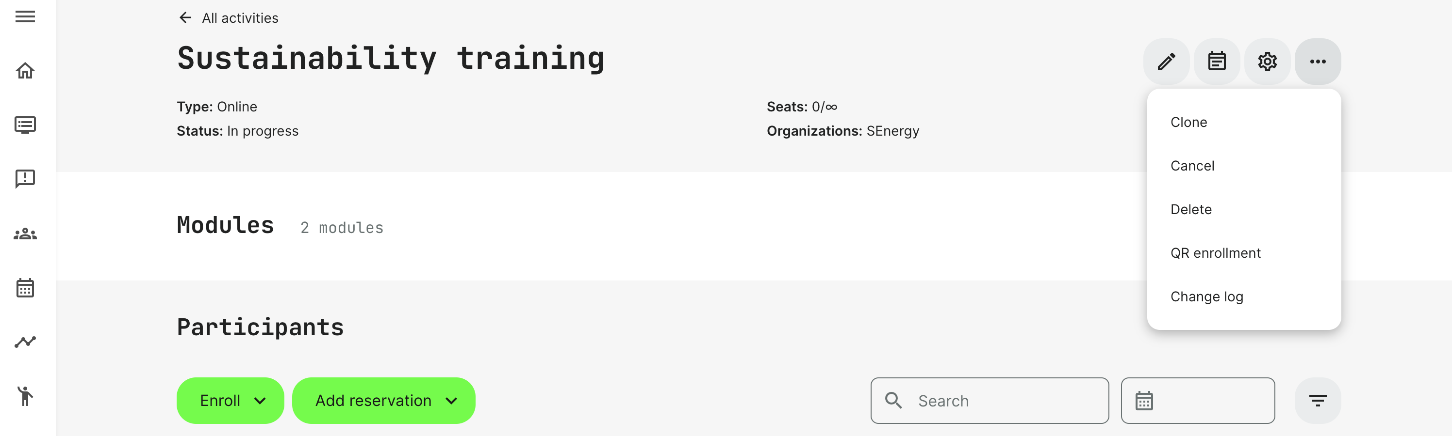 - Manual creation and combined enrollment from the activity. This includes reservation for a new user.
