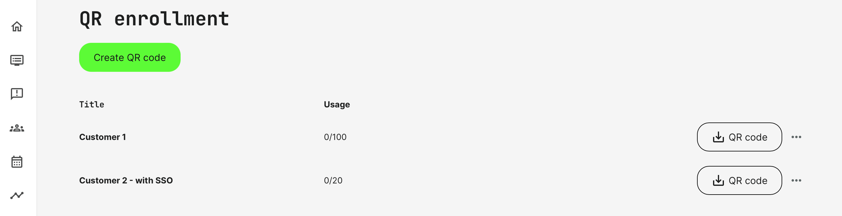 - QR codes/links can be limited to be used a number of times. This way you can distribute a QR code and limit it to e.g., 100 enrollments.