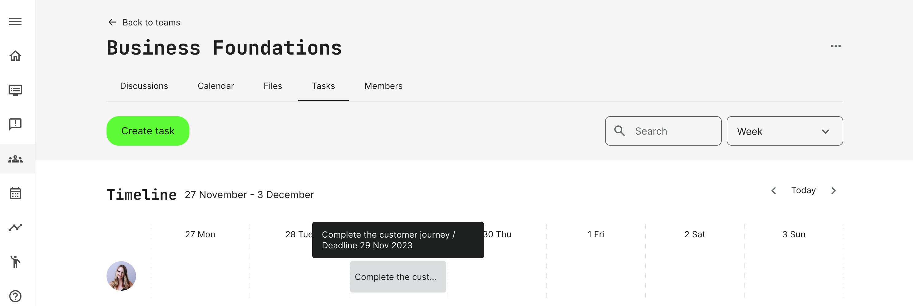- Created tasks are displayed to all the Community members with deadlines, an overview of all tasks, my tasks and search options.