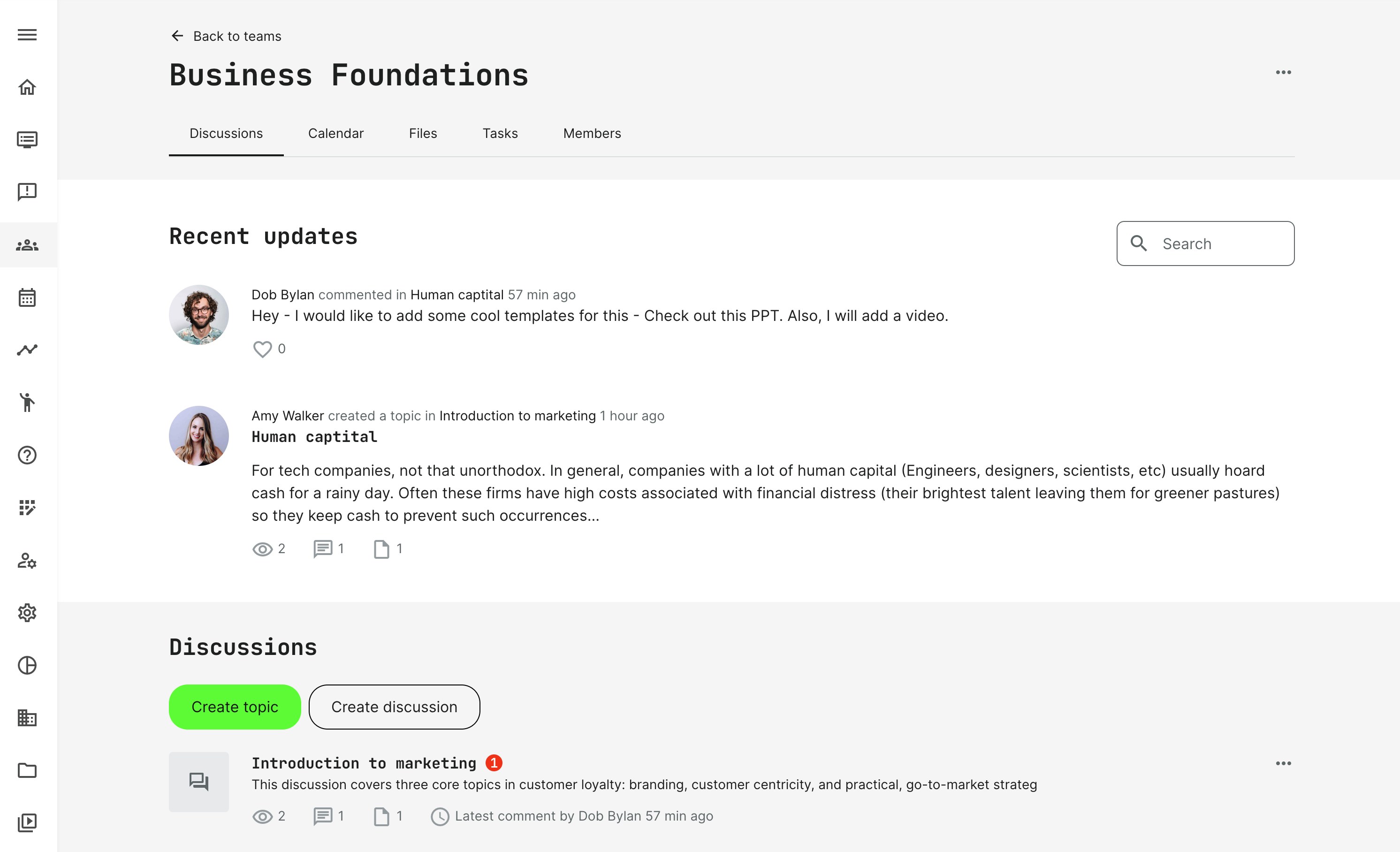Communities are for conversations, file sharing, and an integrated part of facilitation