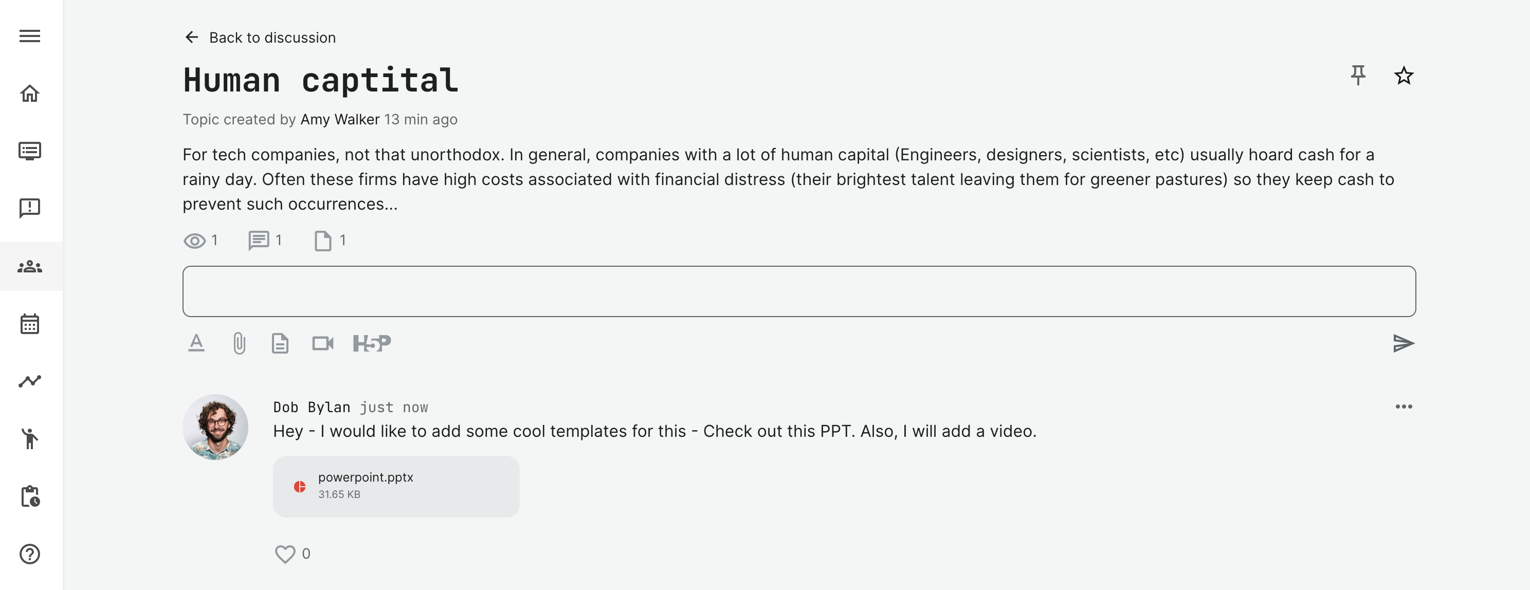 - Files attached to discussions and topics are automatically tagged by discussion and topic information, which will allow users to find “files from this discussion” easily, from the files archive.