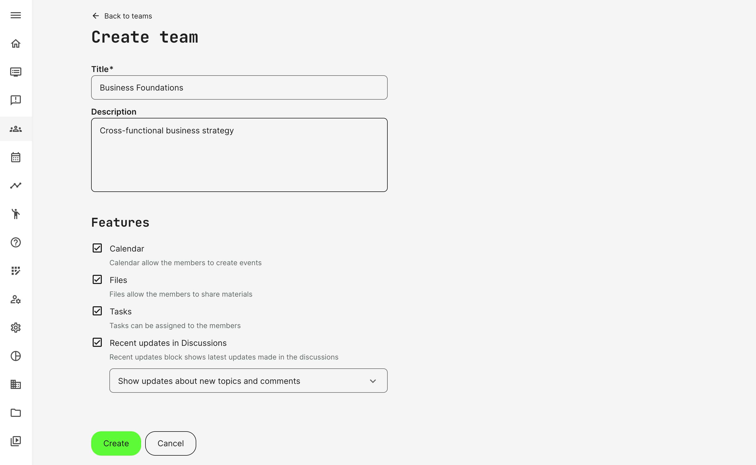 While creating a Community manually, choose the features settings for the Community. You can edit those settings at any time.