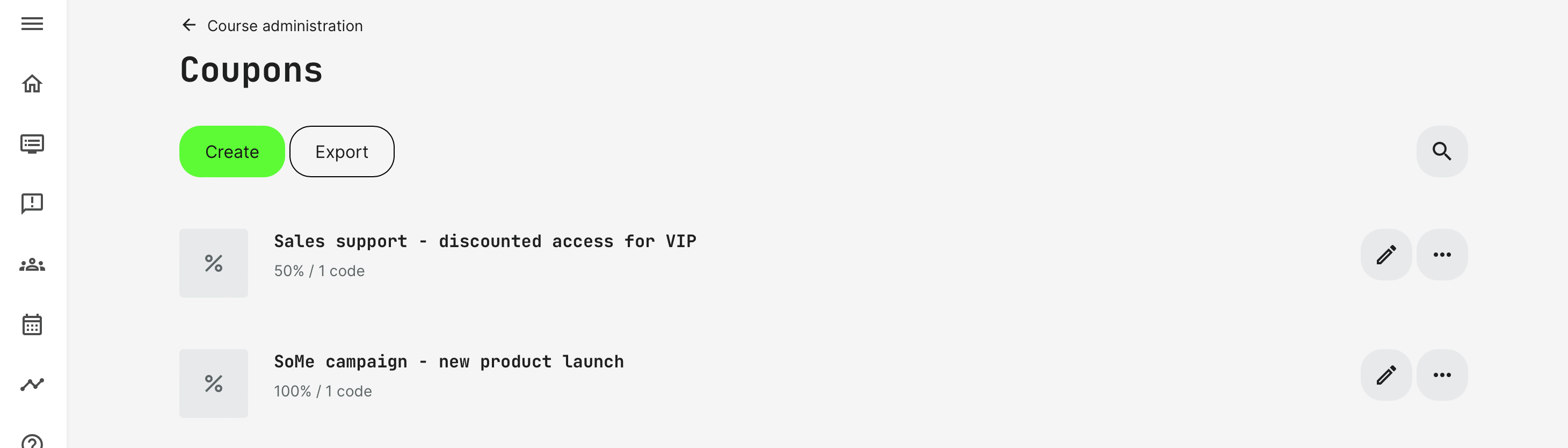 Use Coupons to offer discounted access with limited groups or open access for periods for SoMe campaigns, custom distribution and more