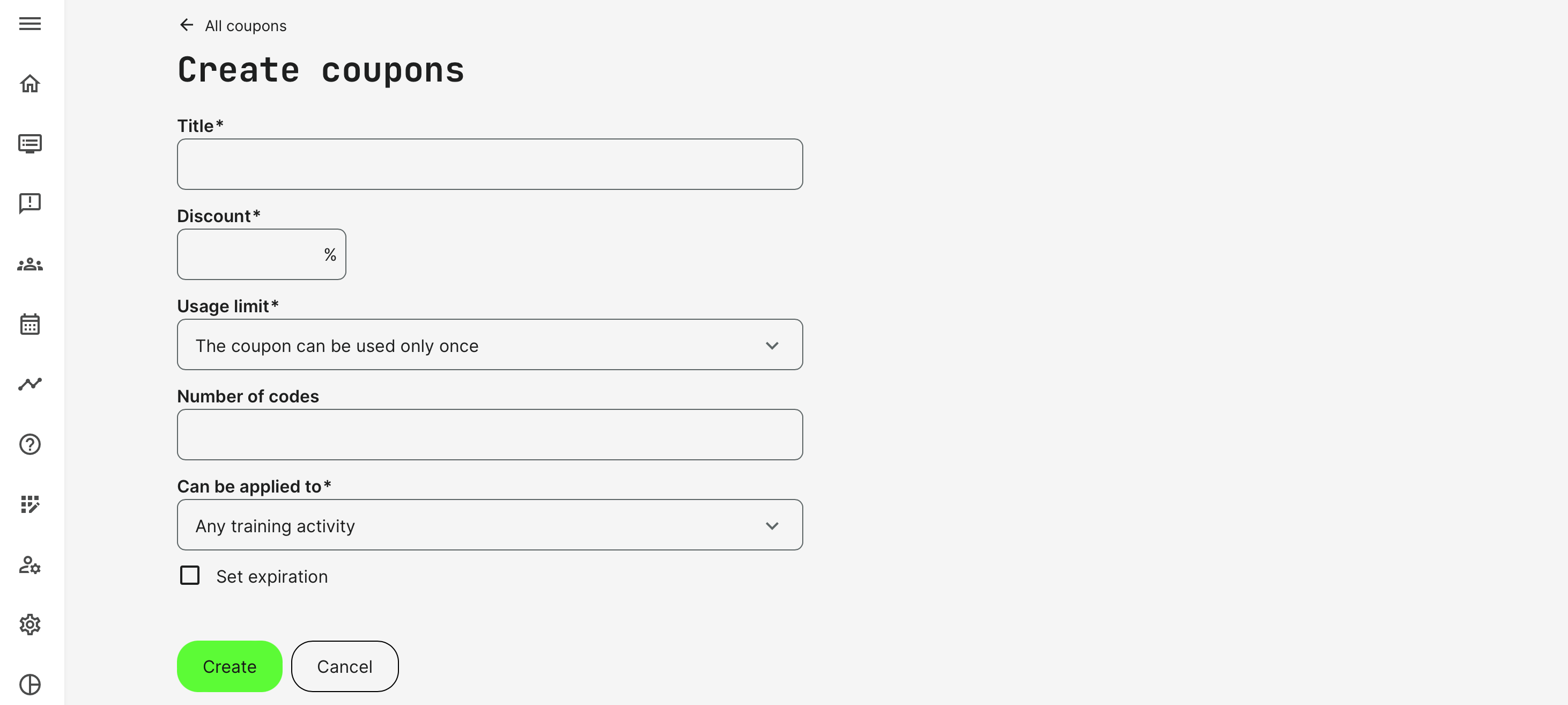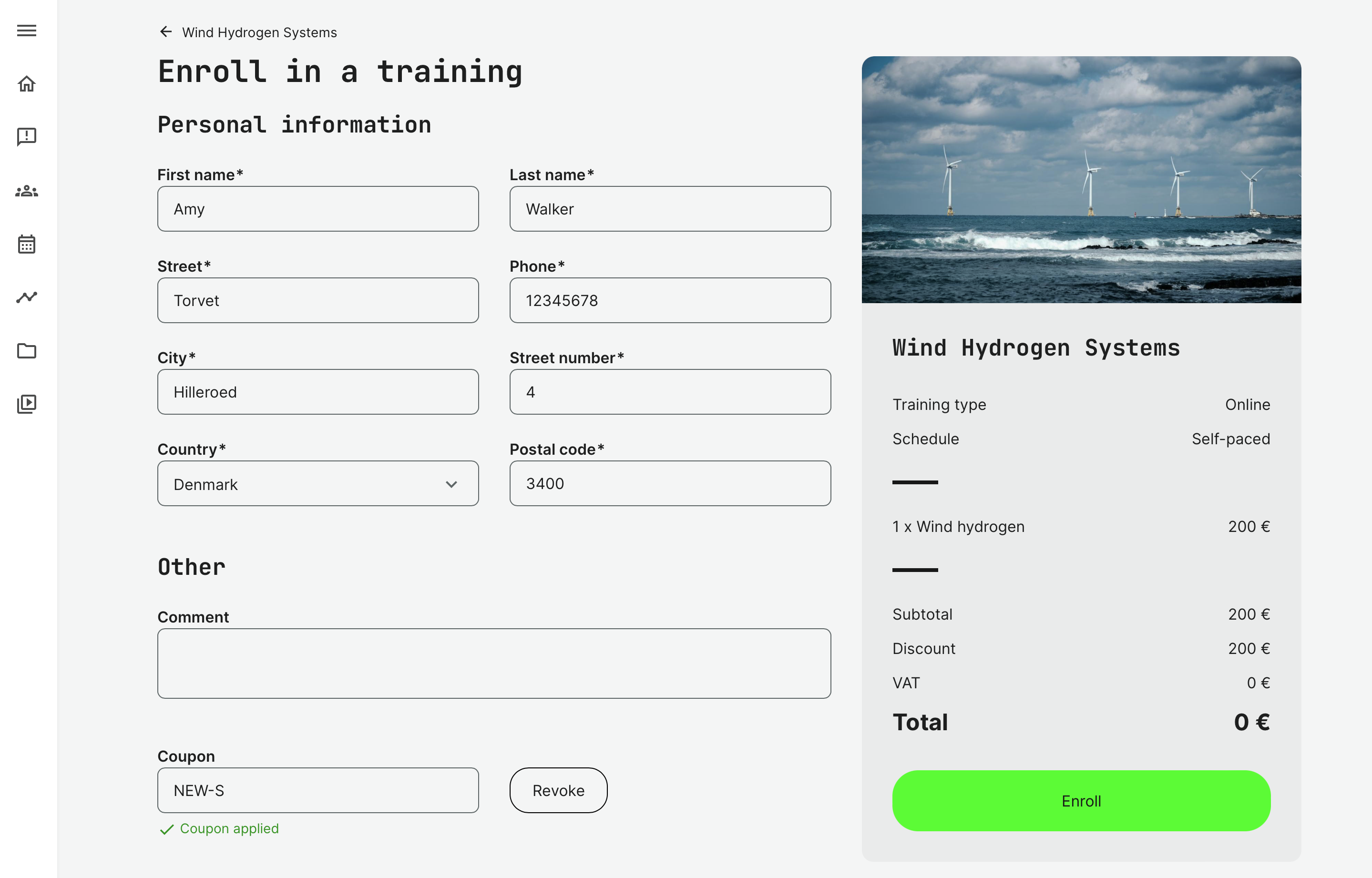 - If a training is already free, the coupons option is not available on the checkout.