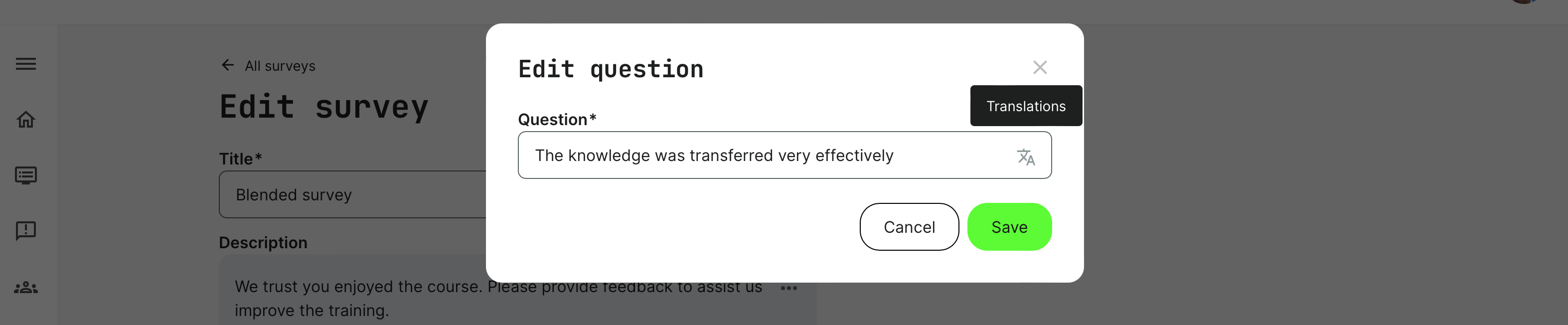 - Create training feedback surveys in the Course Administration.