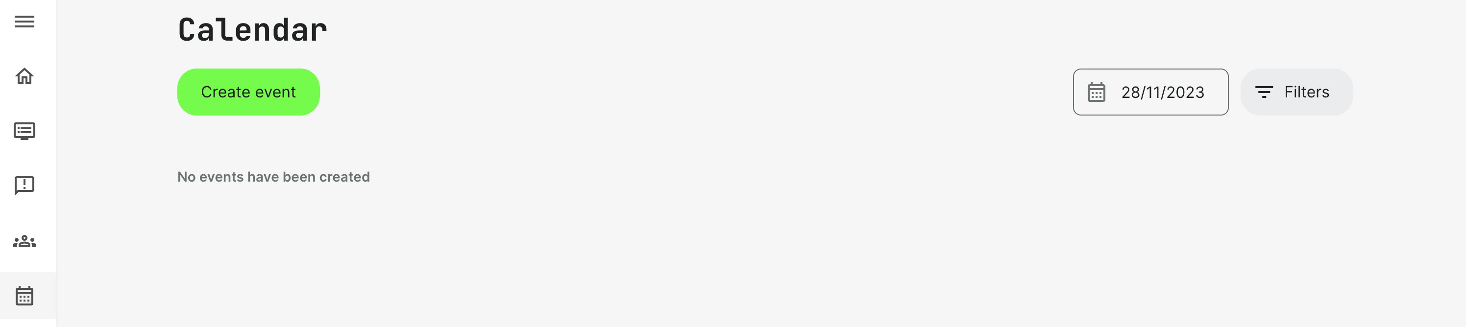 Calendar events are accessed through the Calendar menu item.