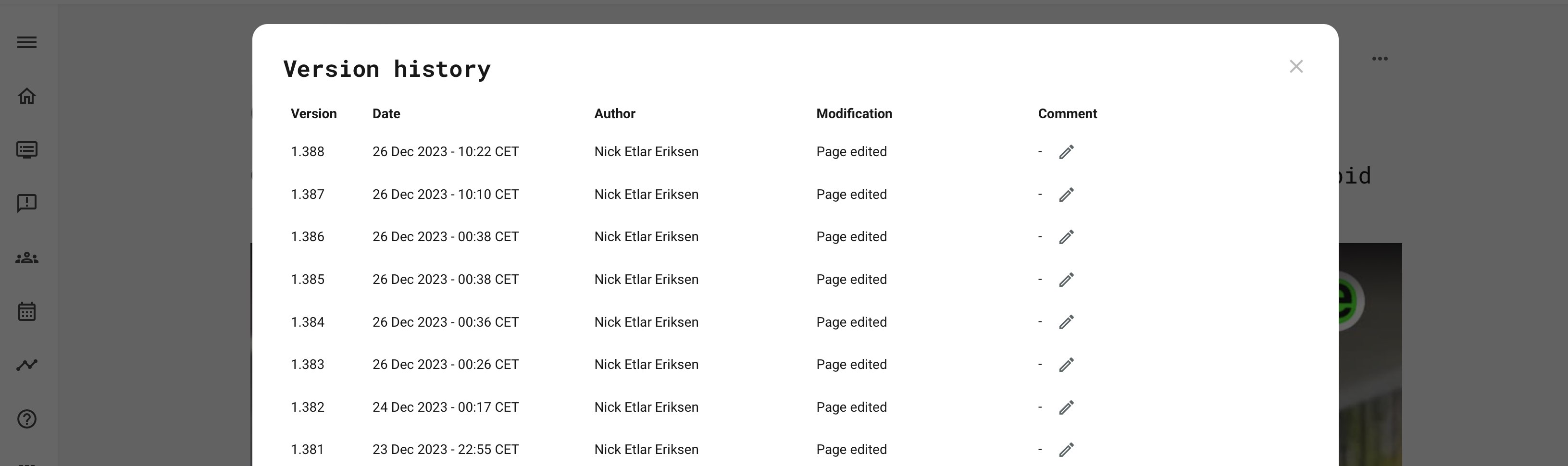 For this reason, it is possible to provide additional context to the changes, for future admins and authors to make sense of the change. This comment will be visible in the version history documentation, on the course.