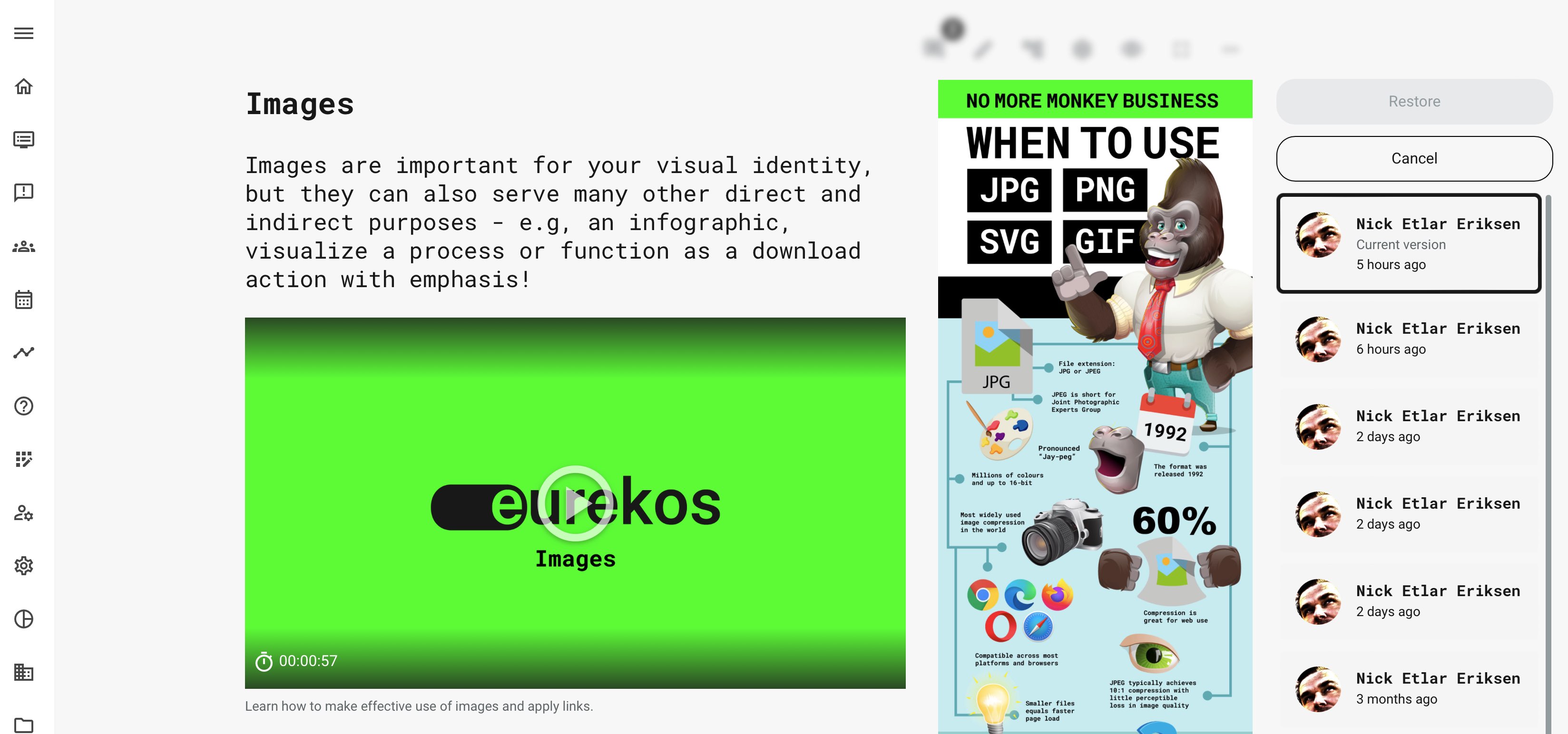 Version numbers represent critical information in several difference processes and use cases. This is both while creating, editing content, but also for administrators who are setting up facilitation and providing access to the right courses, etc.
