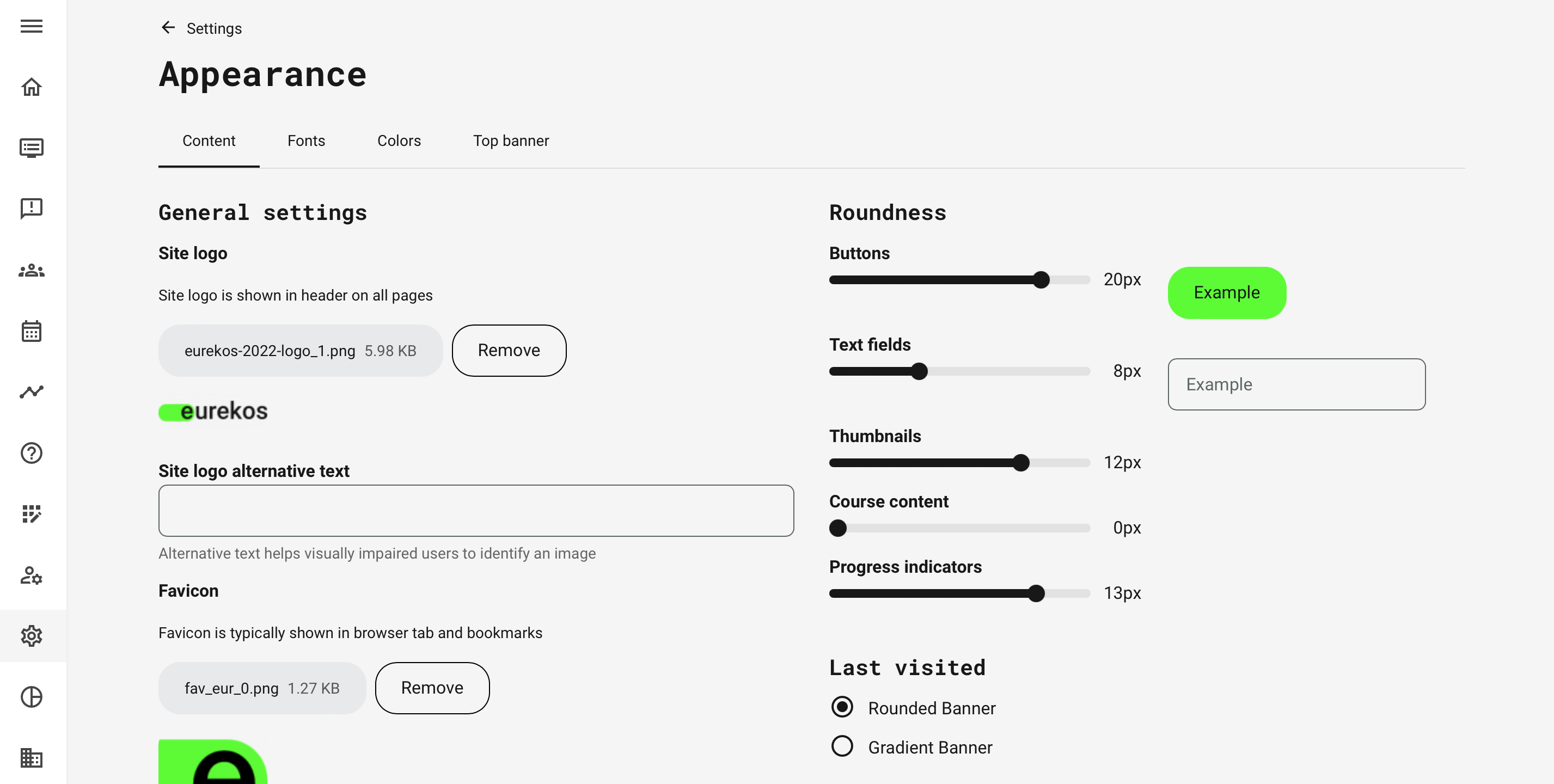 Appearance has been updated to include the option of controlled content widgets (blocks of content) to have their own roundness default settings. This is to accommodate square corners on standard images and similar.