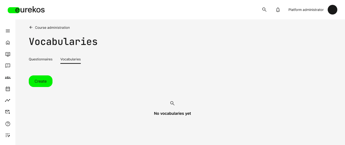 Once you've enabled it in your platform's general settings, Vocabularies appears as a new tab in Questionnaires. Now you can create predefined lists of options—referred to as vocabularies—that can be used when setting up multiple-choice, single-choice, or dropdown questions. Instead of manually entering response options for each new questionnaire, you can simply select an existing vocabulary to populate the question automatically.