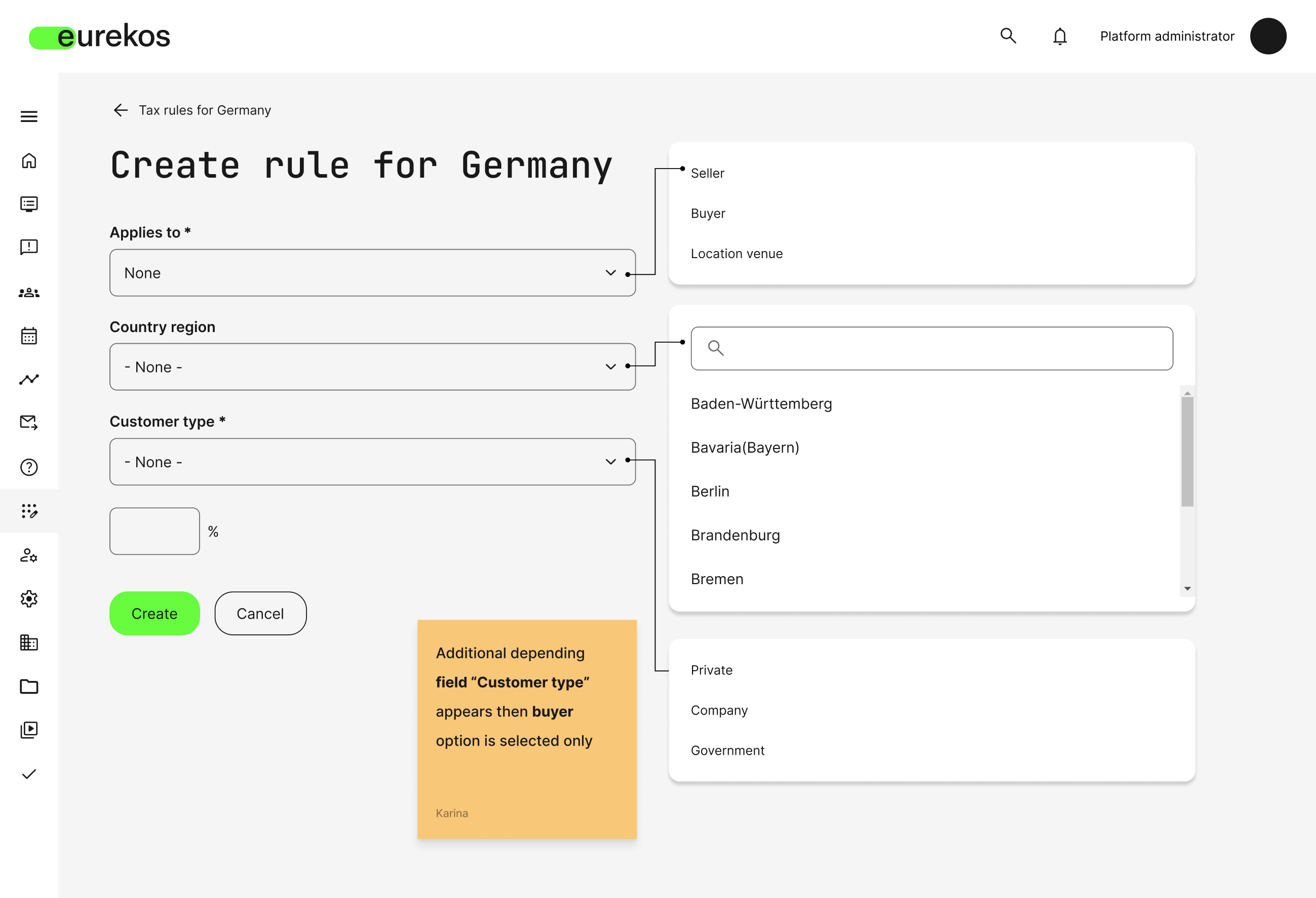 - Buyer: Tax rules for buyers can be further refined based on state/region and customer type (Private, Company, Government Institution).