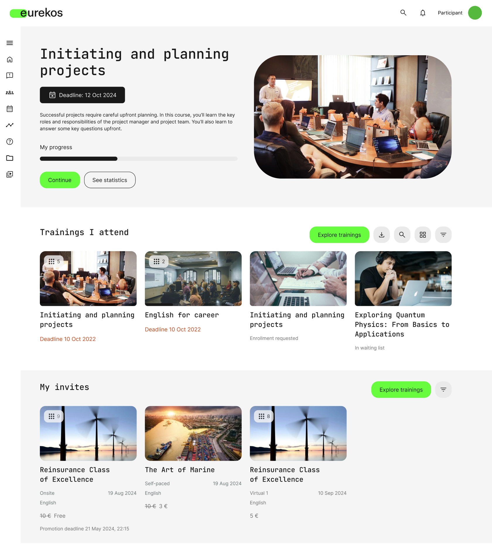 This update is designed to boost engagement and increase conversion rates from invites by providing users with a clear overview of their invitations, reducing the likelihood they miss an opportunity to participate. If you would like more information about this feature set or are interested in activating it on your platform, please reach out to support@eurekos.com or contact your Customer Success Manager.