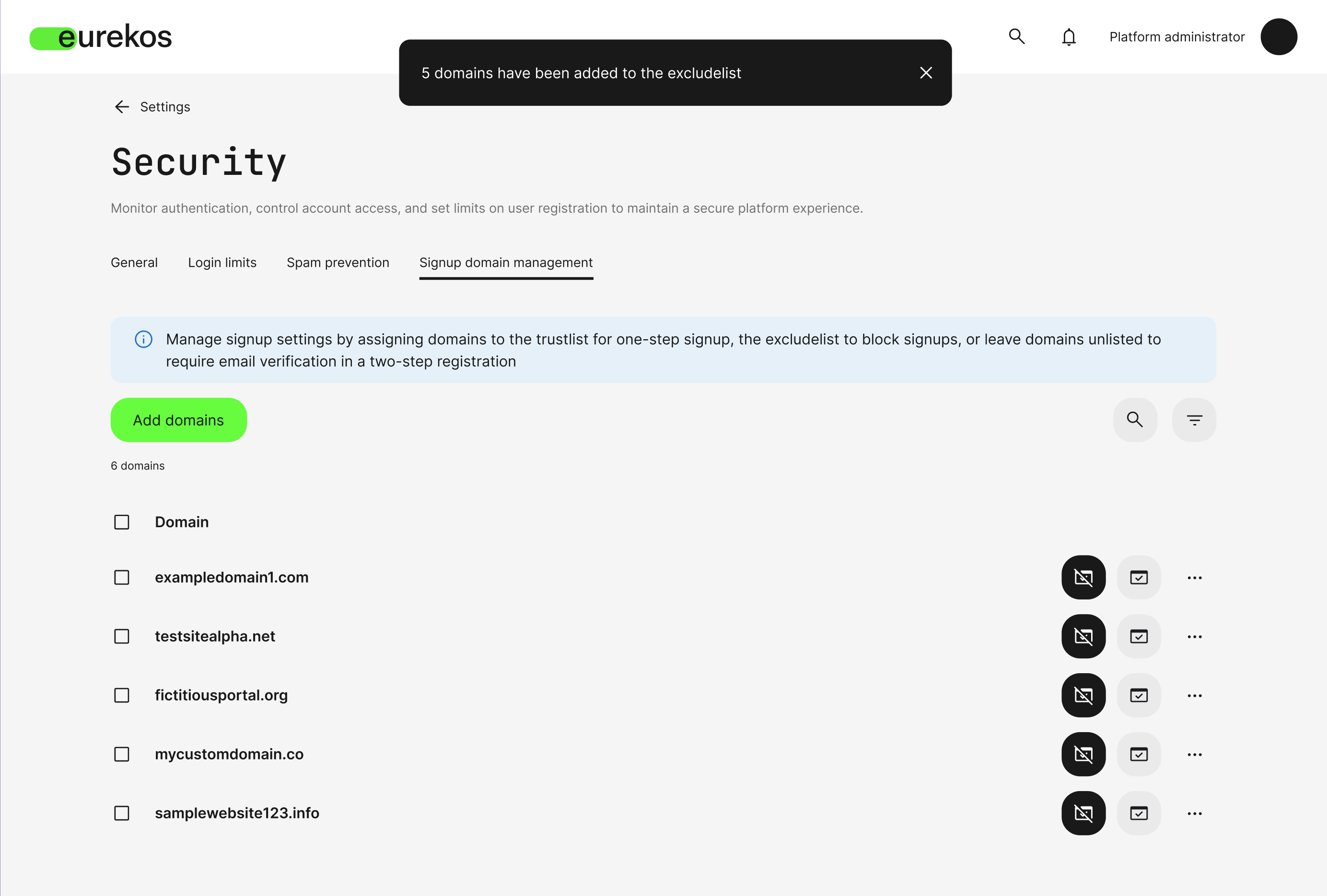 Additionally, we have added a new configuration in the platform's security settings (Settings > Security) to manage email domain validation during signup.