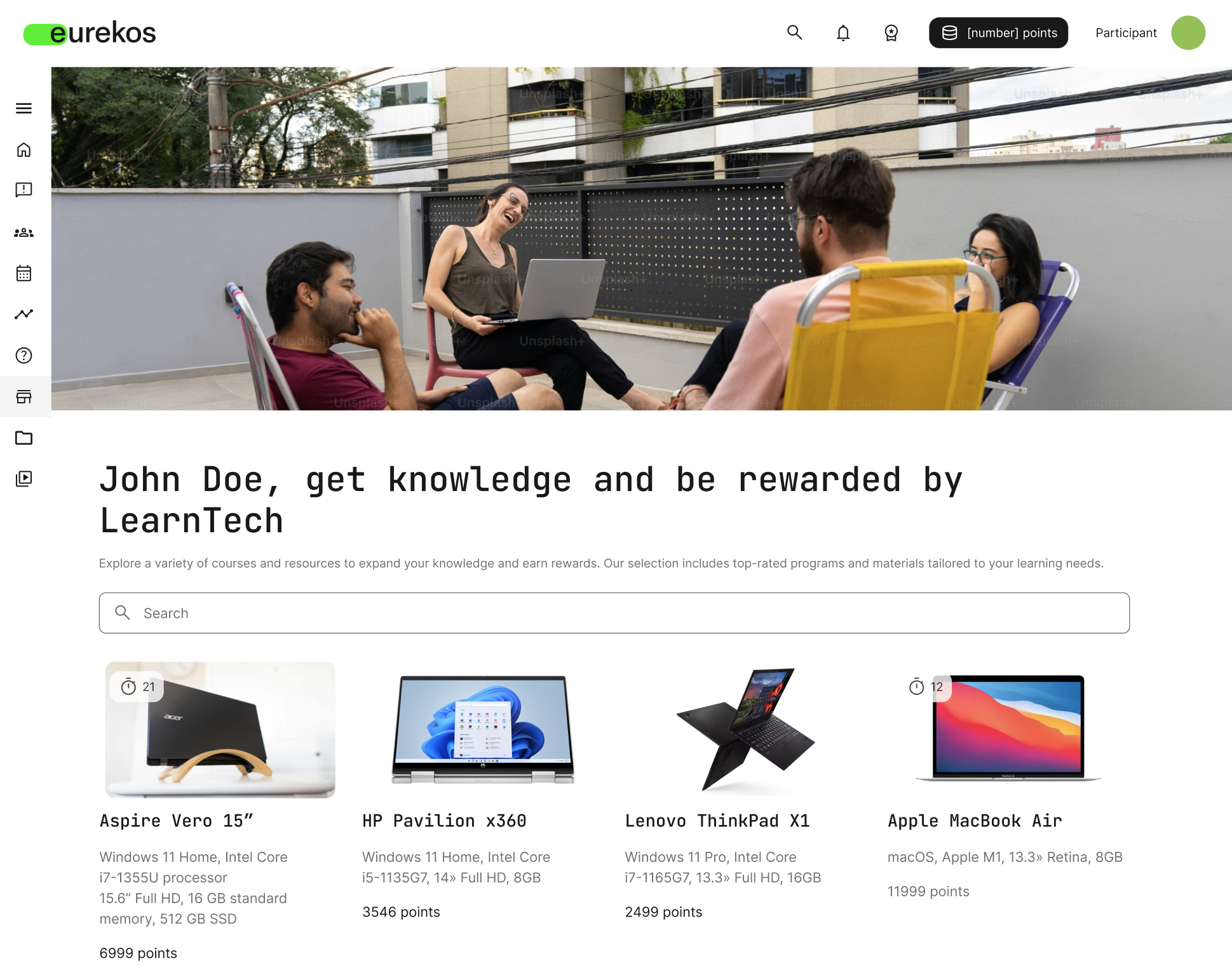With Incentives, users are rewarded for their engagement with your platform. Administrators can configure rules to assign points for actions such as completing modules, passing assessments, earning certificates, watching videos, or submitting a questionnaire. Points accumulate in the user's profile, providing an ongoing incentive to participate in activities. The native shop allows users to redeem their points for physical products, which can include anything from branded merchandise to specialized equipment, giving you the flexibility to tailor rewards to your audience. Each product includes detailed descriptions, images, and a cost in points.