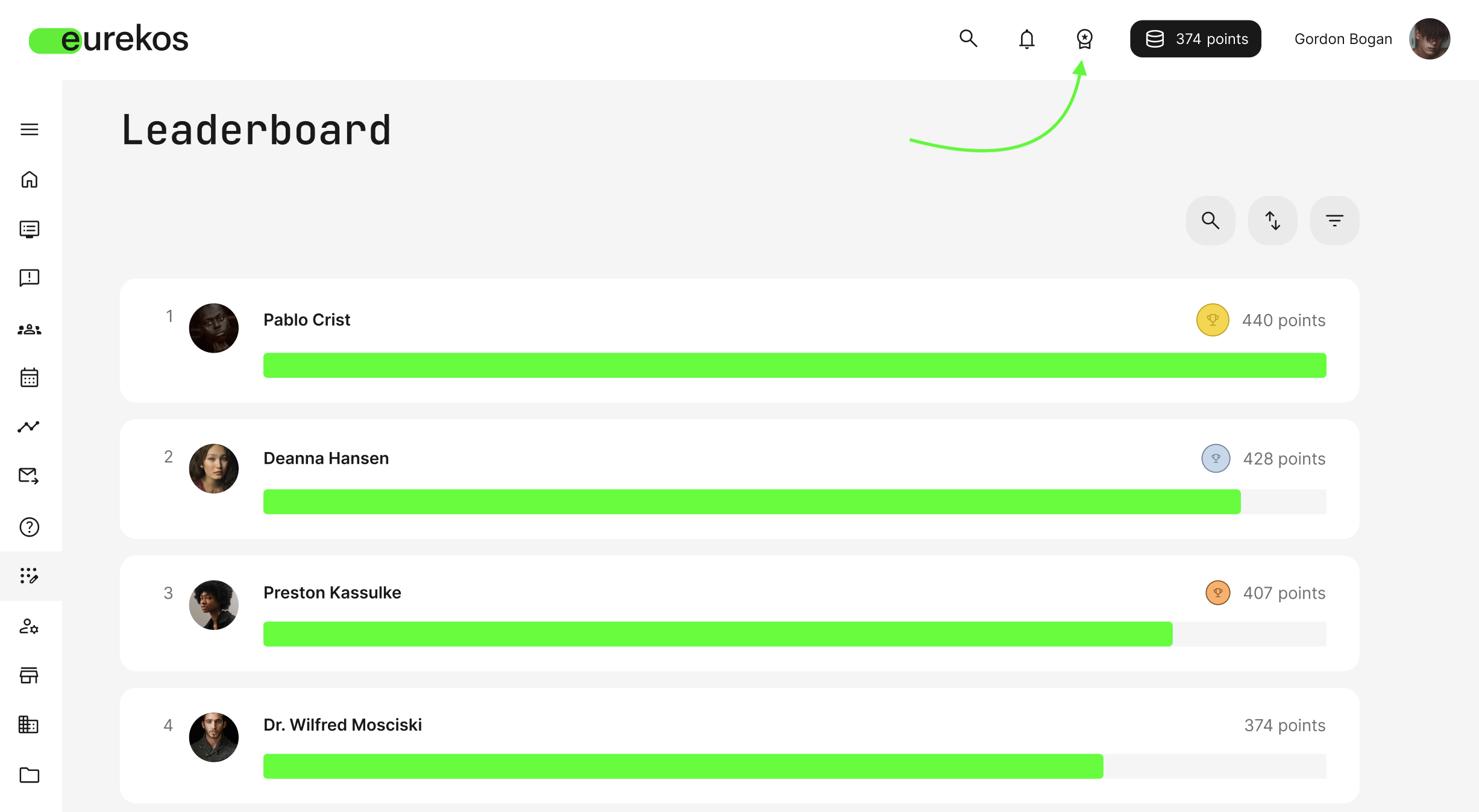 Leaderboard for organizations with Incentives enabled. Can be accessed from the platform header at any time.