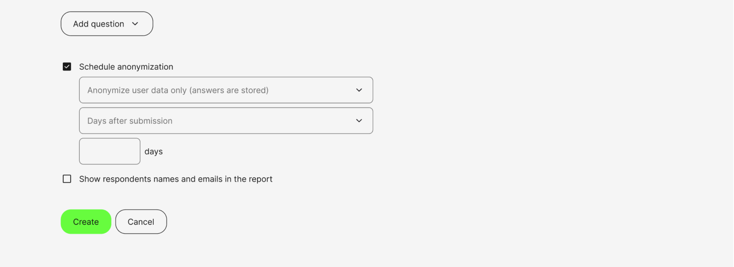 - On a specific date: Option to anonymize the desired data at a specific time regardless of when the responses were submitted.